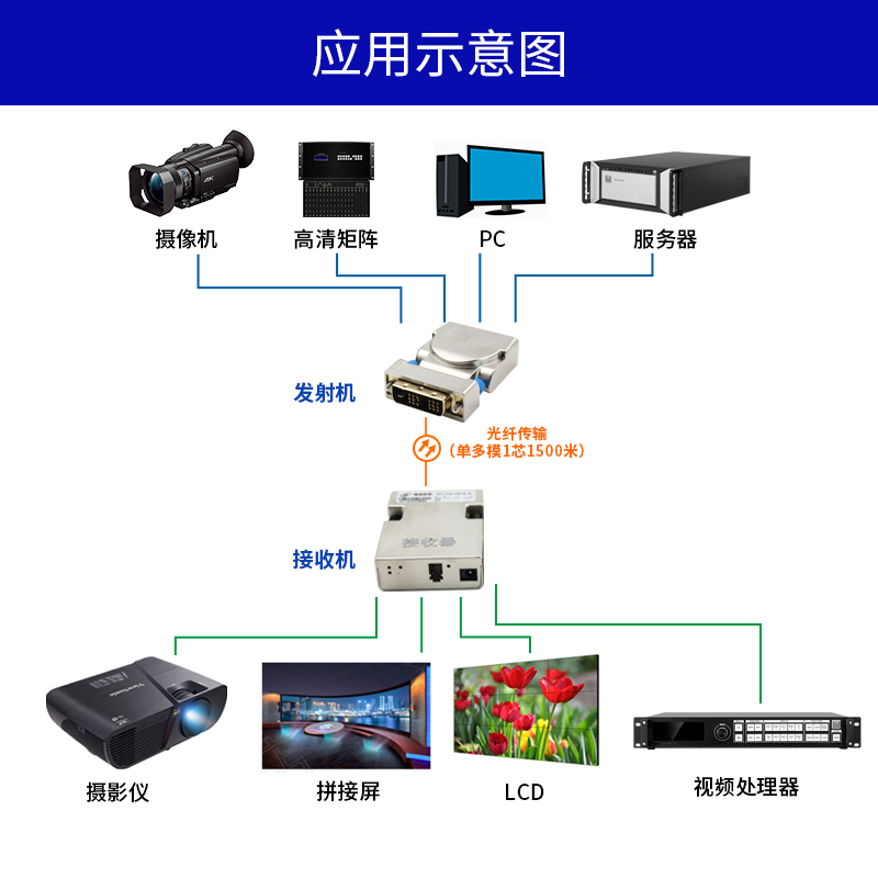 led large screen projection lease 2K1 core dvi optical transmission 1201 fiber extender supports hdmi audio edid learning 1080p60hz single multi-mode single multi-mode generic non-compression
