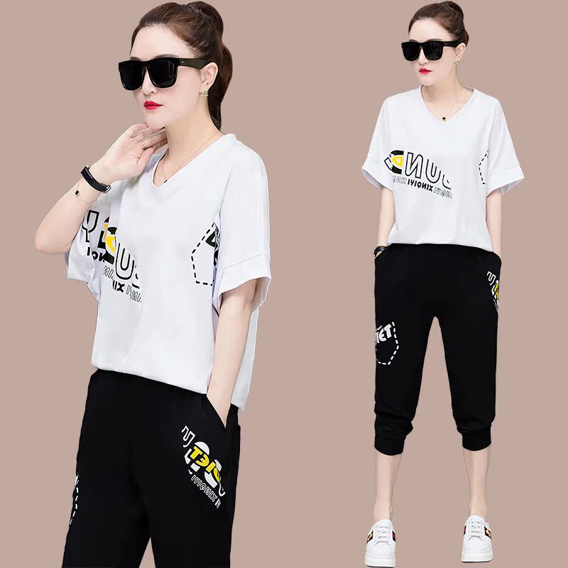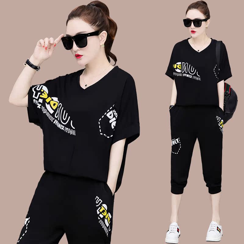 2022 Summer new Korean version Fat mm Thin Casual Suit Women Summer Fashion Grand Scale Code Loose Sportswear 2 sets