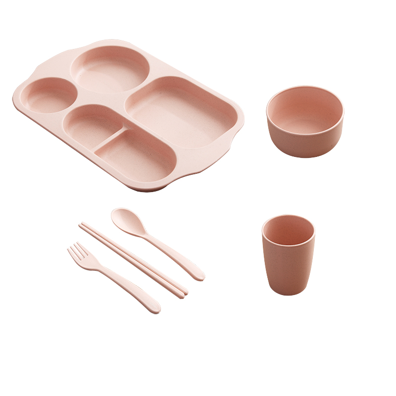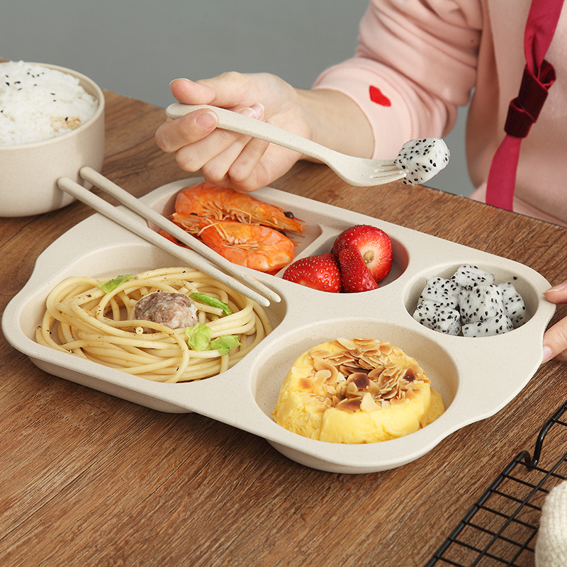 Home Baby Dinner Plate Kit Cartoon Cute Students Children Wheat Straw Cutlery Og Anti-Fall Deputy Food Dinner Plate
