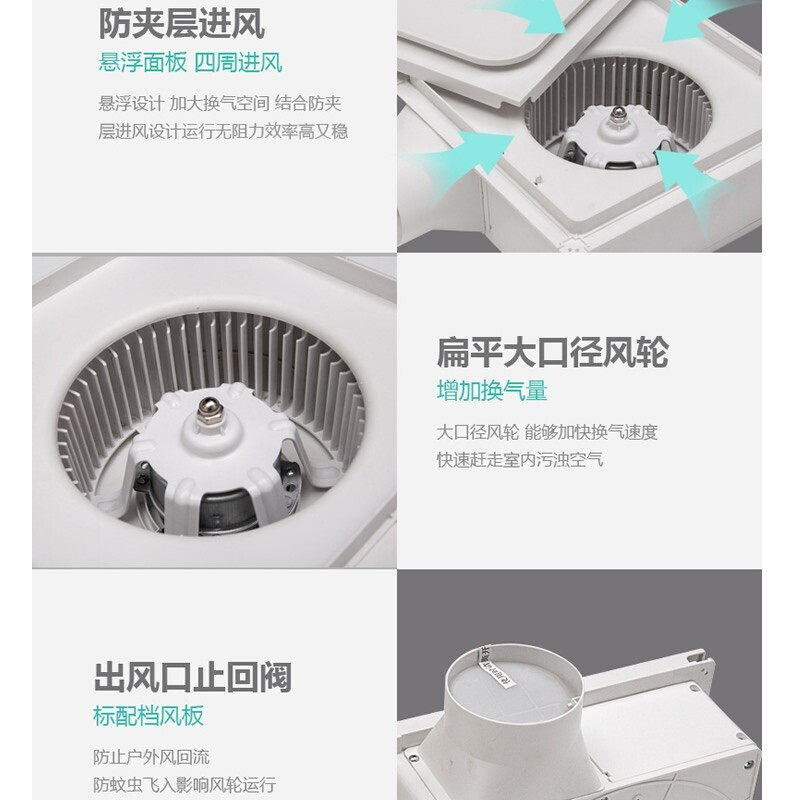 Green Island Wind Exhaust Fan integrated ceiling ventilator Powerful Kitchen Makeup Room Exhaust Fan Aluminum Buckle plate with exhaust fan