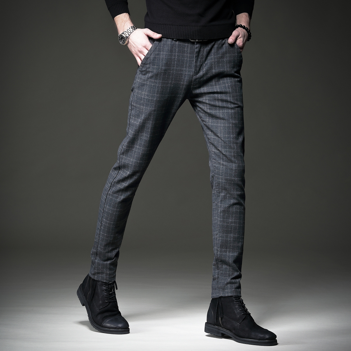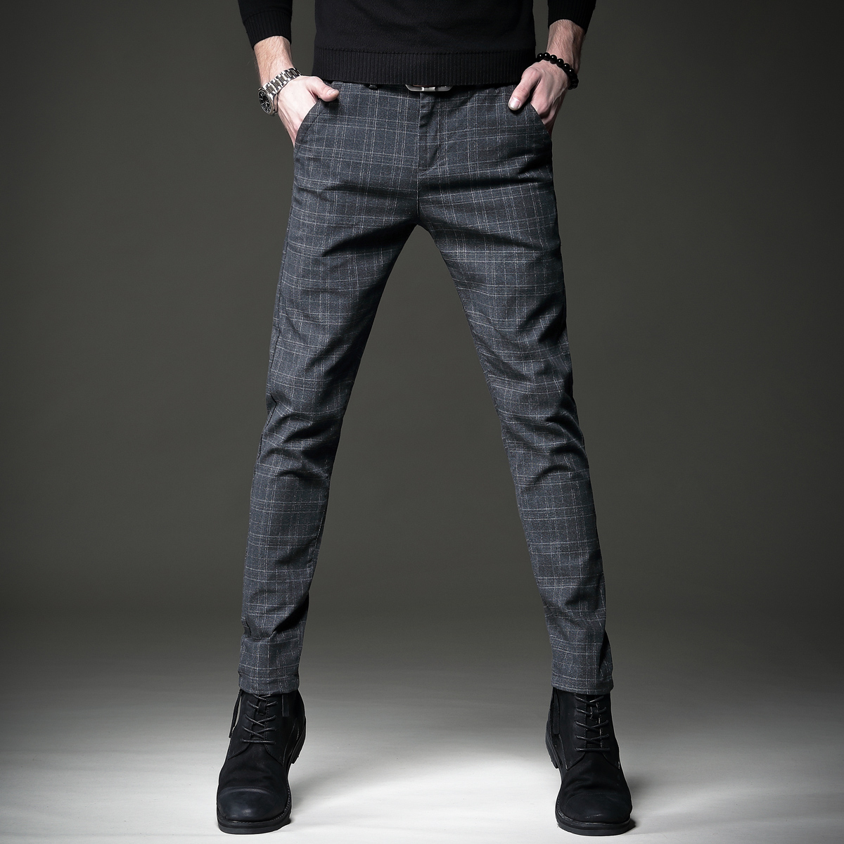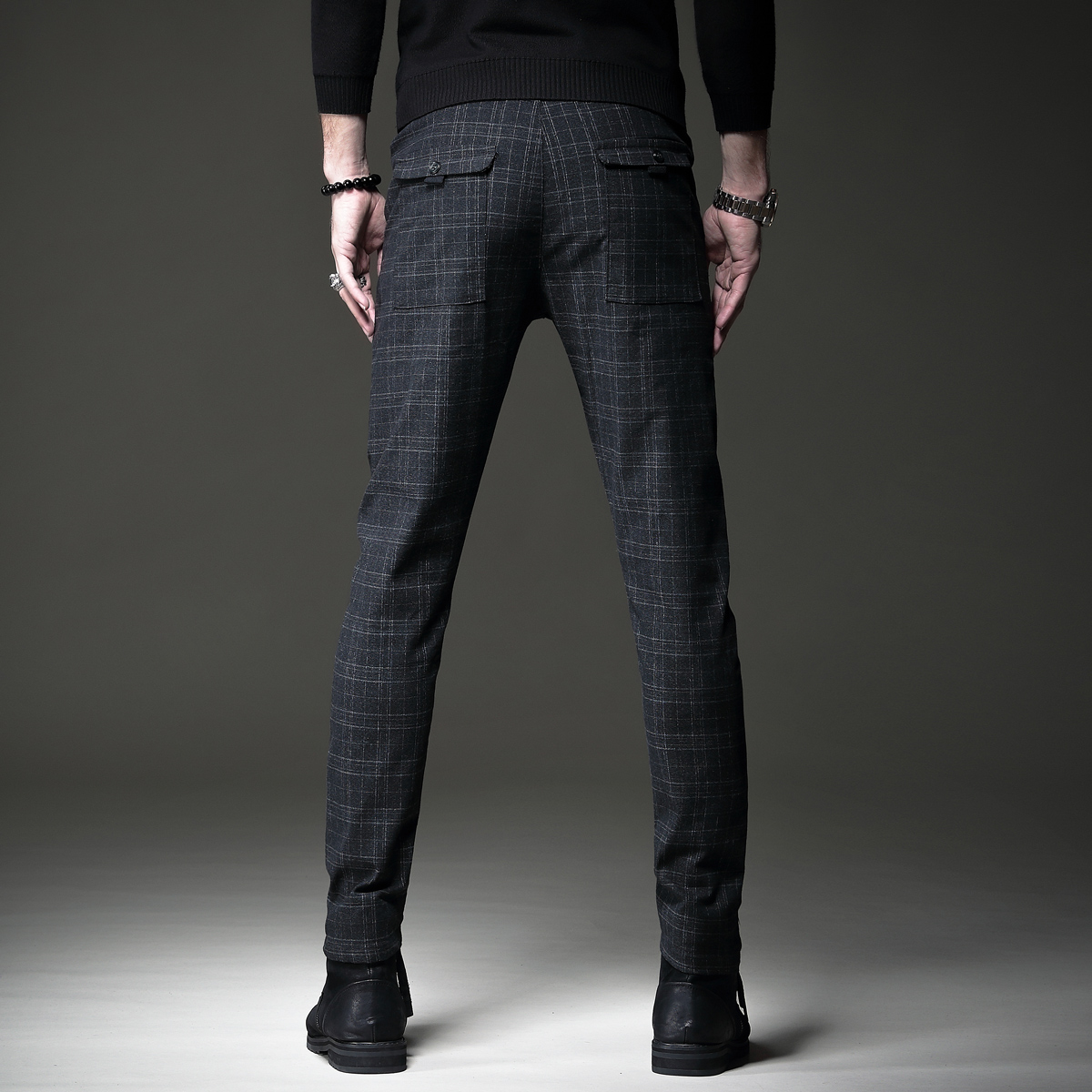 Precious autumn plus velvet plaid work casual pants men's Korean version of the slim small feet all-match trousers men's tide brand pants men