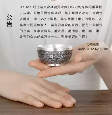 Suzhou Yinlou silver Teacup 999 feet silver tea set Practical large master cup Silver tea cup Silver tea set 50ml