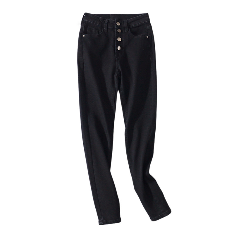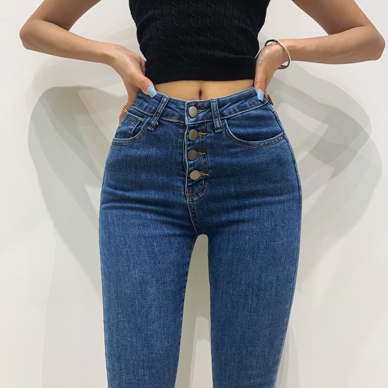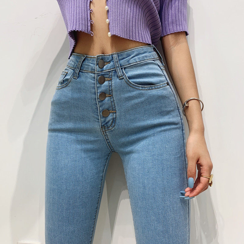 LIVIA Europe and the United States 4 buckle tight stretch small feet trousers retro high waist thin bag hip jeans pencil pants
