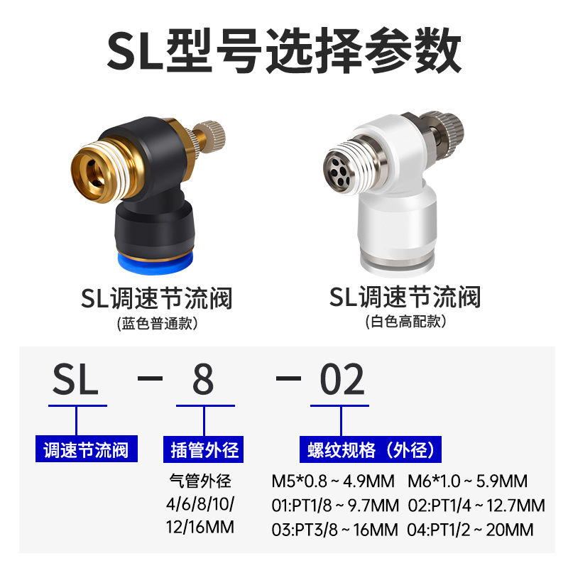 Pneumatic flow adjustment SL air pipe joint throttle valve with adjustable speed one-way cylinder JSC fast air pressure manual 8
