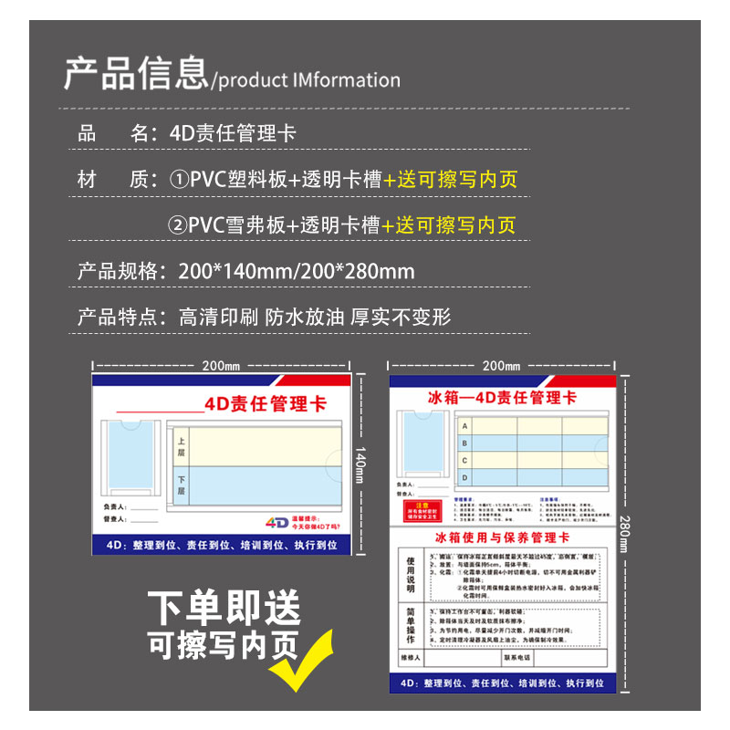 Kitchen 4D Management Responsibility Card Catering Refrigerator Freezer Sterilization Cabinet Refrigerated Hygiene Inspection Labeling System Responsibility Card