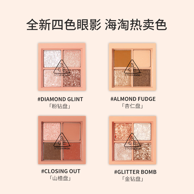 (Small black box)3CE four-color eye shadow tray 4-color all-flash gold diamond powder diamond makeup tray pearlescent portable