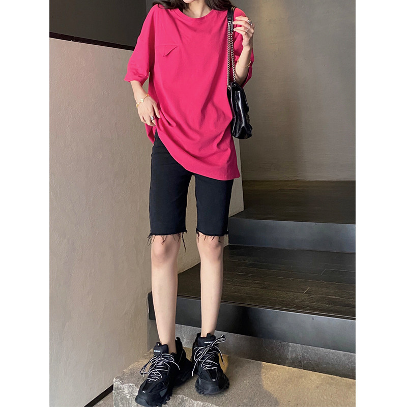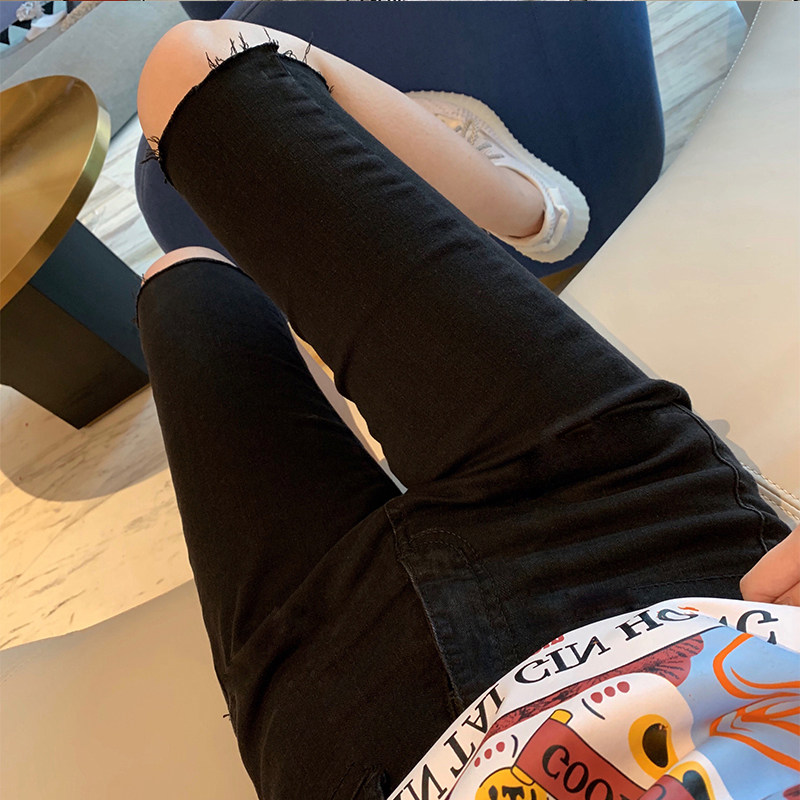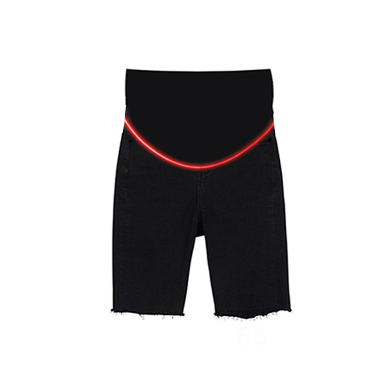 Maternity denim shorts black summer thin Korean fashion spring and autumn outside wear five points raw tight hot pants