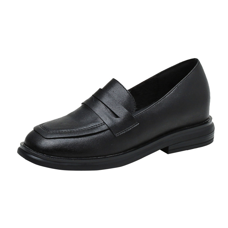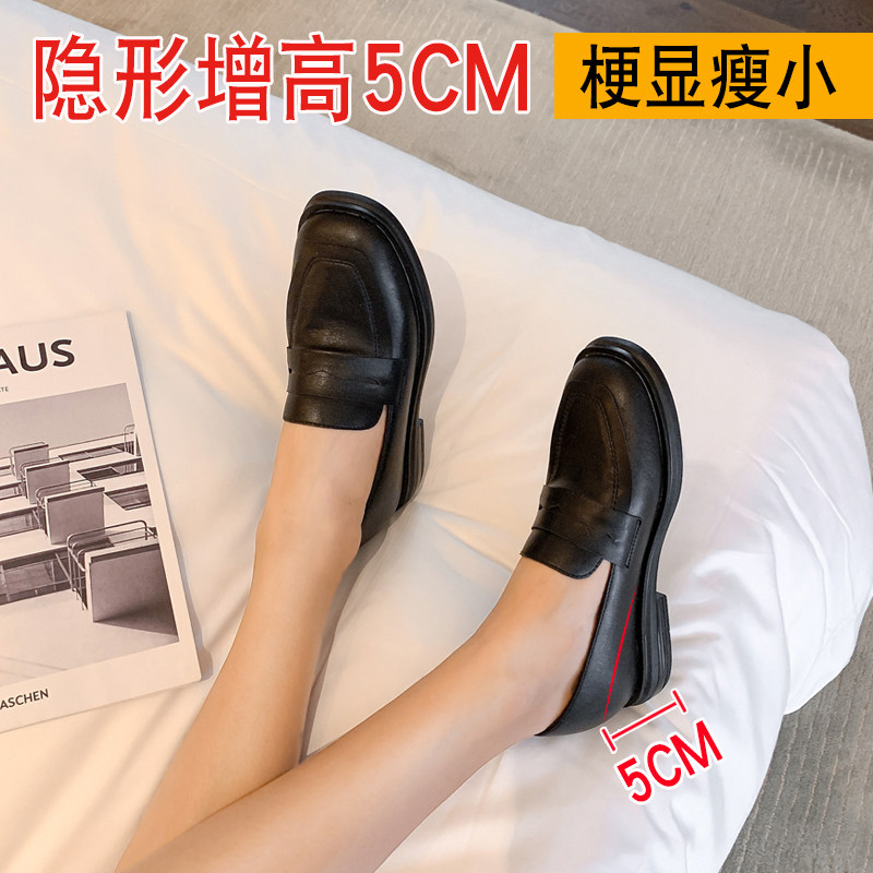 British style black small leather shoes women's soft leather all-match 2022 spring and autumn new loafer single shoes leather inner heightening women's shoes