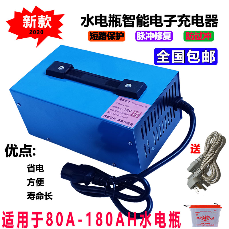 Electric tricycle charging motor 60V72V water single bottle aluminium acid battery pure copper high power fast charger
