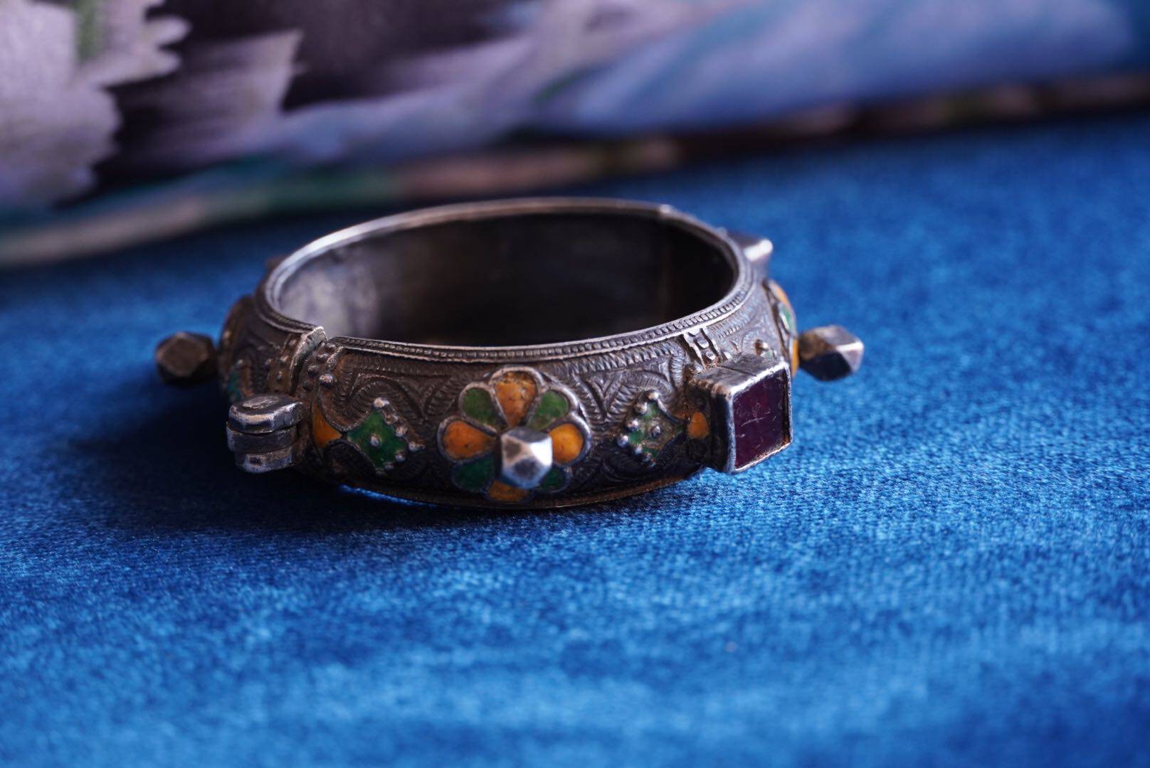 North Africa Moroccan Sahara antique old silver old glazed enamel Berber nomad bracelet
