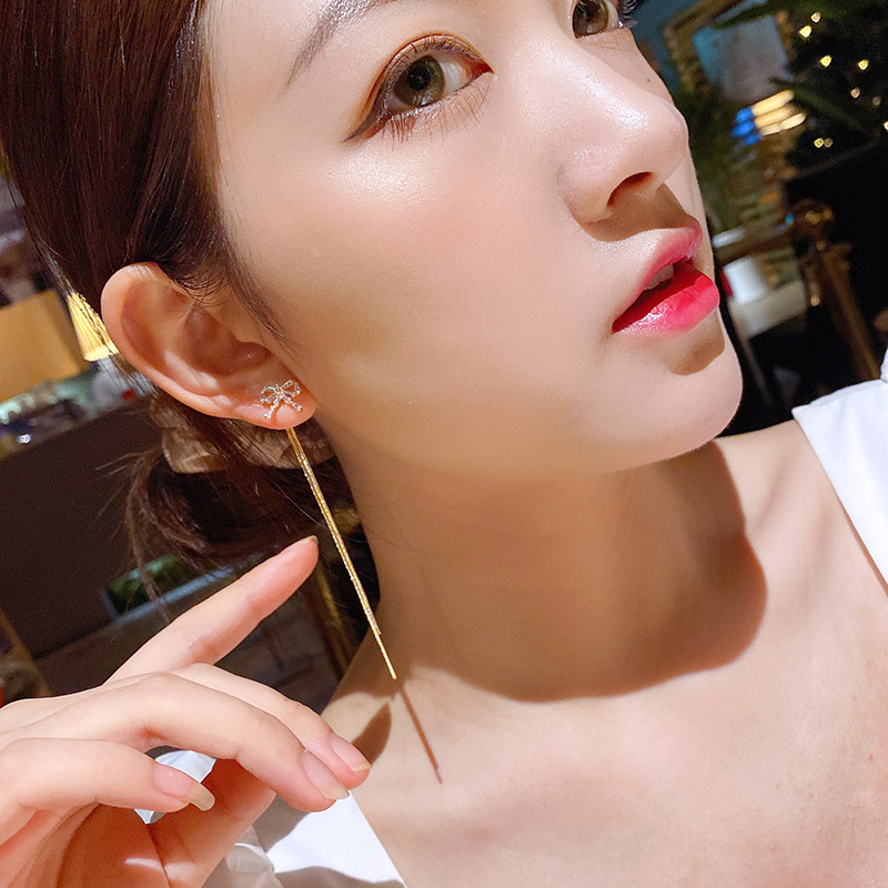 2022 new Japan-ROK Temperament Long Version Flow Su Earrings Female Expats Face Slim Ear Pendant Pure Silver Needle Butterfly Knots