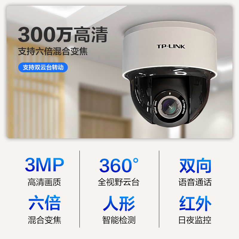 TPLINK Security HD Wireless Surveillance Camera Indoor Hemisphere Home Mobile Phone Wifi Remote Elevator Monitor 360 Degree Panoramic Rotating Gimbal Voice Intercom Video Head