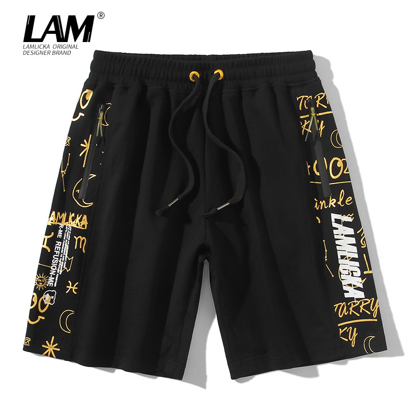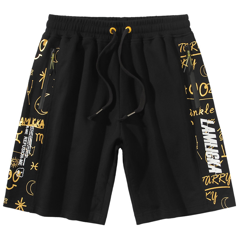 Hot Gold Panda Print 50% Pants Men Summer Loose Tide Card Sports Casual 100 Hitch Full Cotton Outwear 5-Minute Shorts