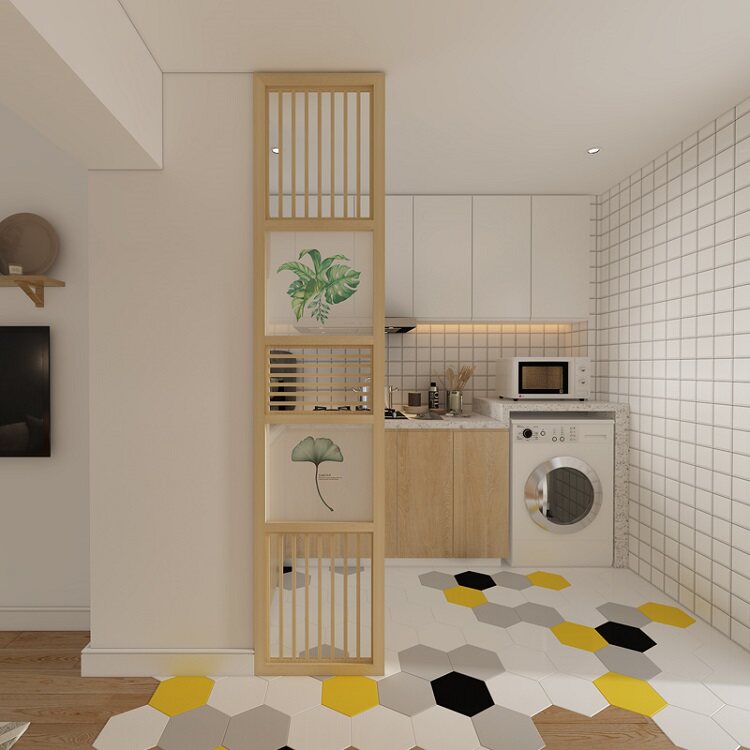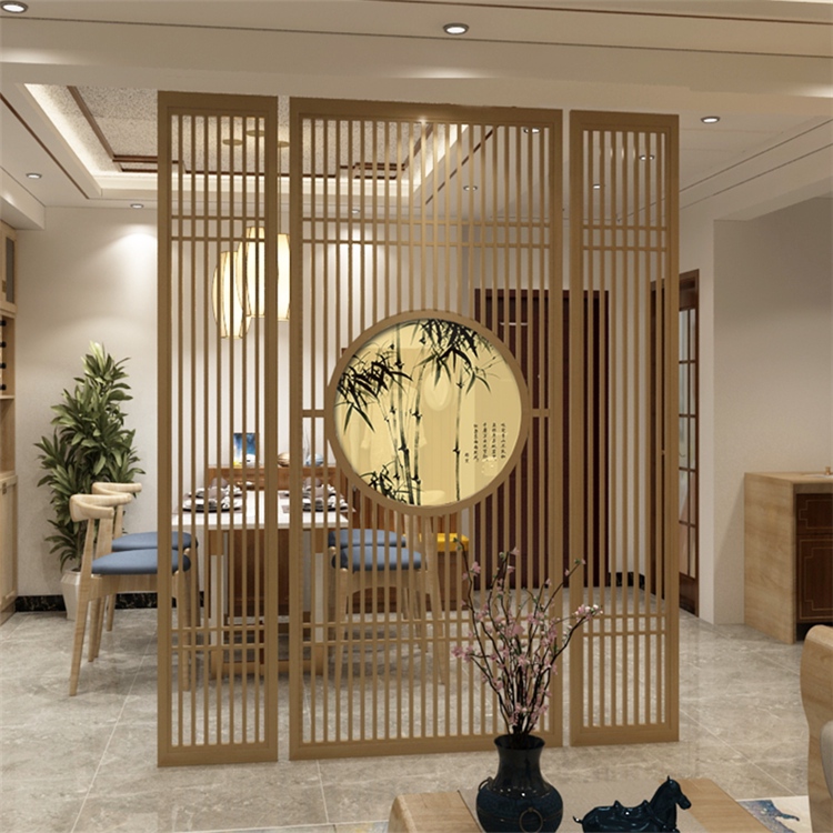 New Chinese-style home screen partition Entrance barrier brake Bedroom block small household modern simple solid wood hollow