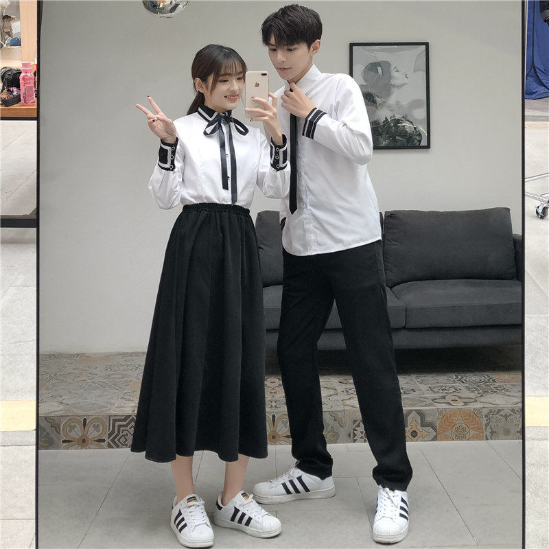 Girls black collar shirts Black ribbon girls black collar shirts Red tie Korean style boys shirts Black tie Korean style boys shirts Red tie girls black collar shirts Black skirts Black ribbon girls black collar shirts