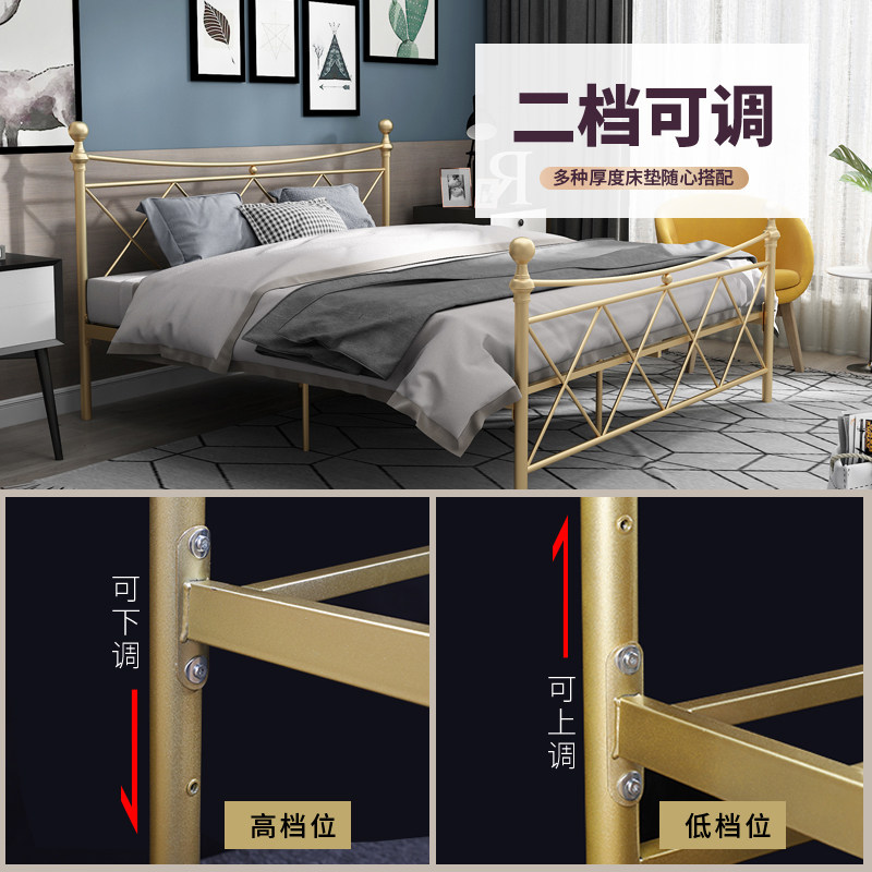 Iron bed 1 5 meters 1 8 single double light luxury Nordic modern minimalist student apartment rental iron bed iron frame bed