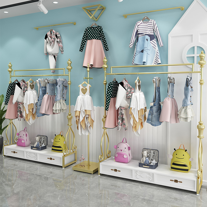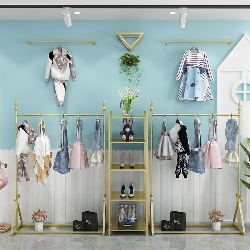 European style golden clothes shelf Clothing store display stand Floor-standing combination women's store shelf Wrought iron Nakajima high-grade