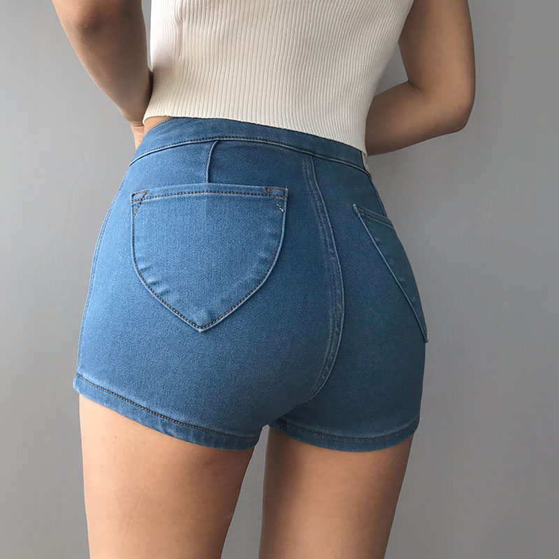 European and American peach buttock jeans high waist slim slope legs long and tight buttock hot pants