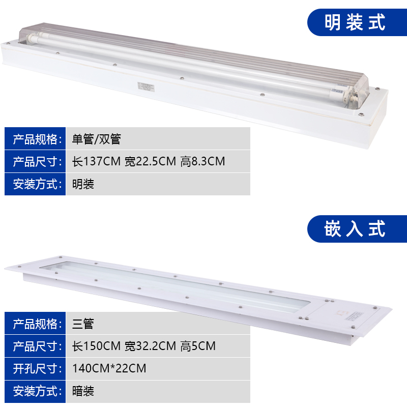 EX Explosion Protection Purifying Light Factory Pharma Workshop Clean 1 2 m T8 Ming-mounted embedded bracket daylight lamp
