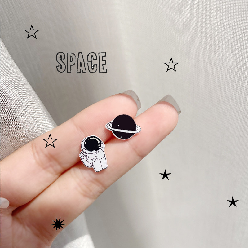 Interesting spaceman sterling silver earrings sleep without picking simple female small earrings ear clips cute earrings