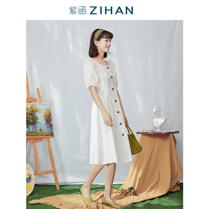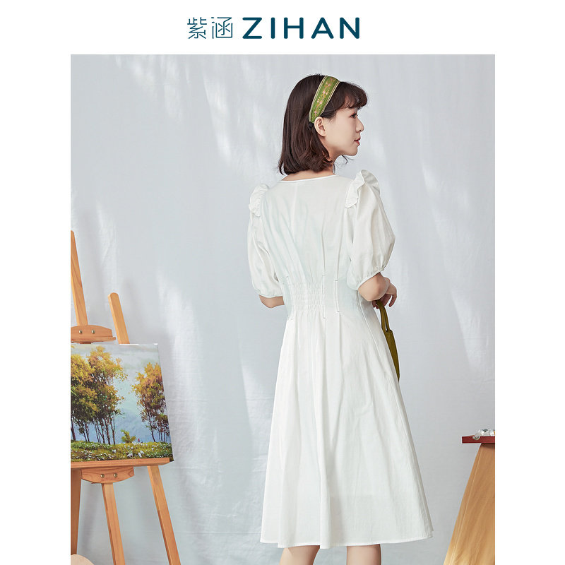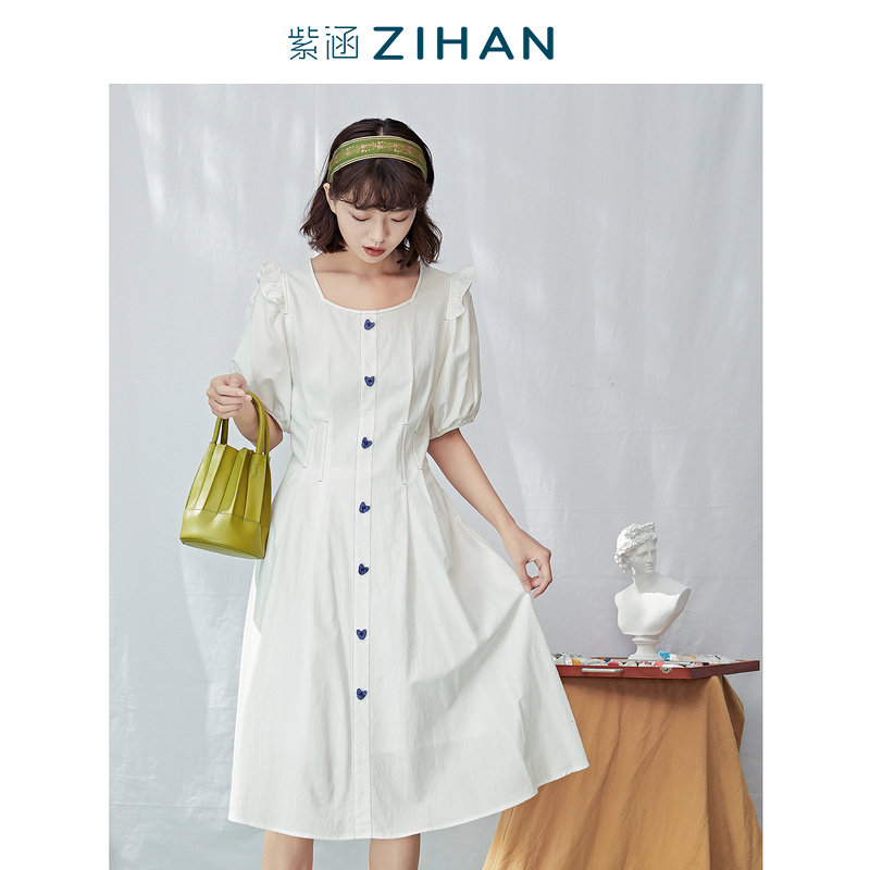 Sena Marne de gallery Purple Culvert Summer Dress with short sleeves Knee Skirt Woman collar Long dress Slim Fit Slim Fit