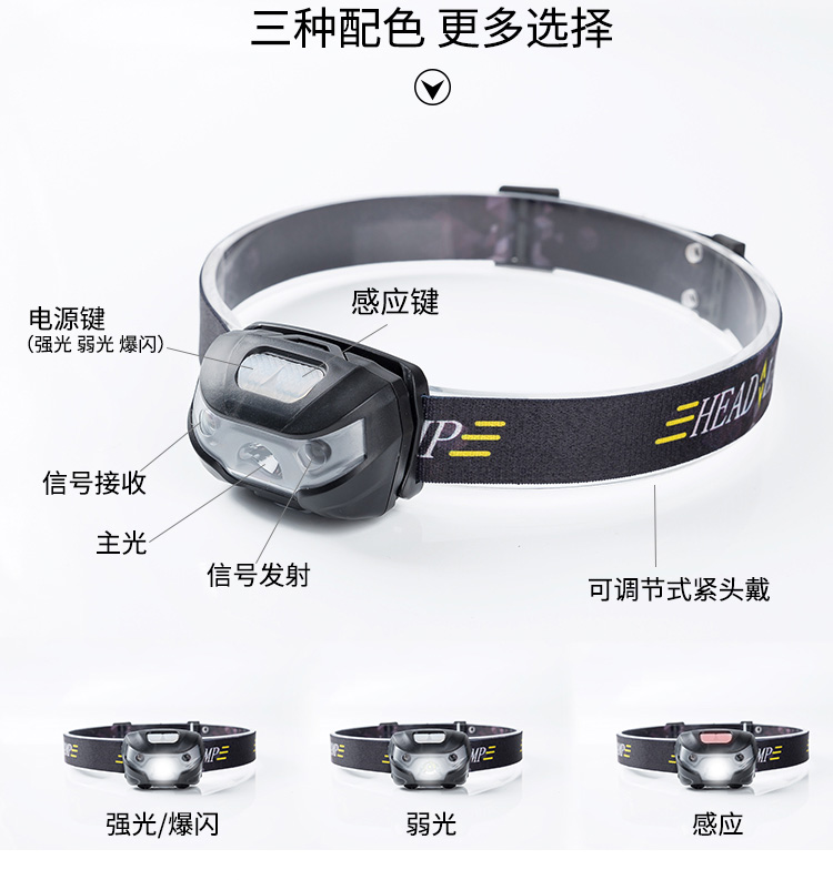 Induction headlights Charging strong light ultra - long fishing outdoor camping cycling wave induction headlights