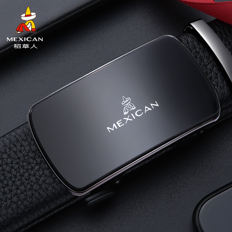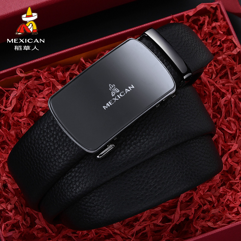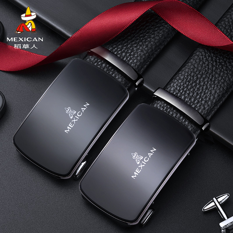 Scarecrow belt men's leather automatic buckle pants belt young people pure cowhide leisure business youth tide