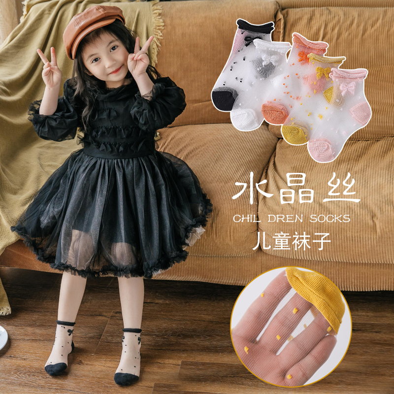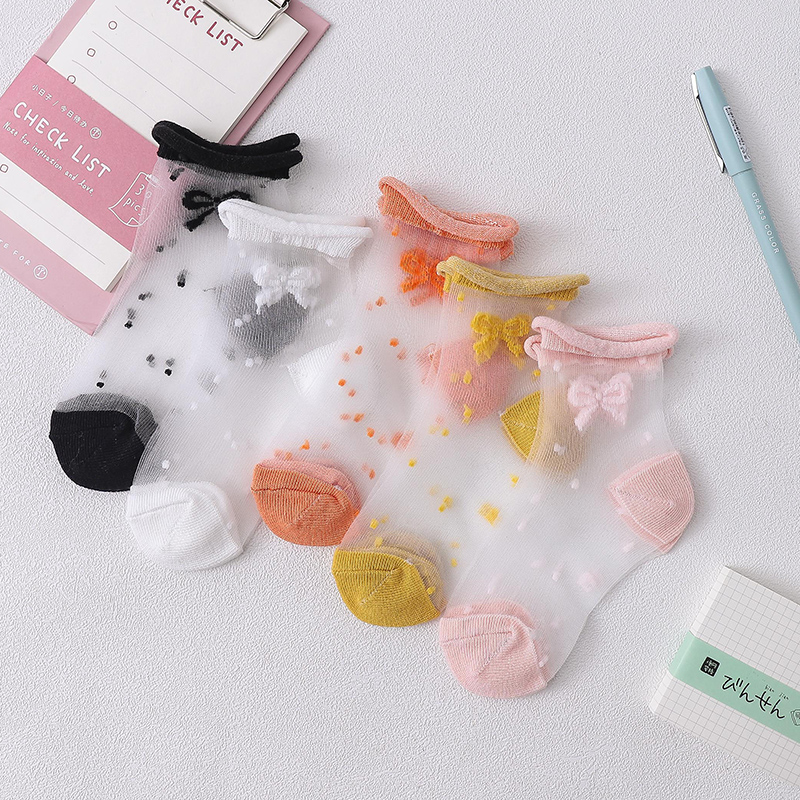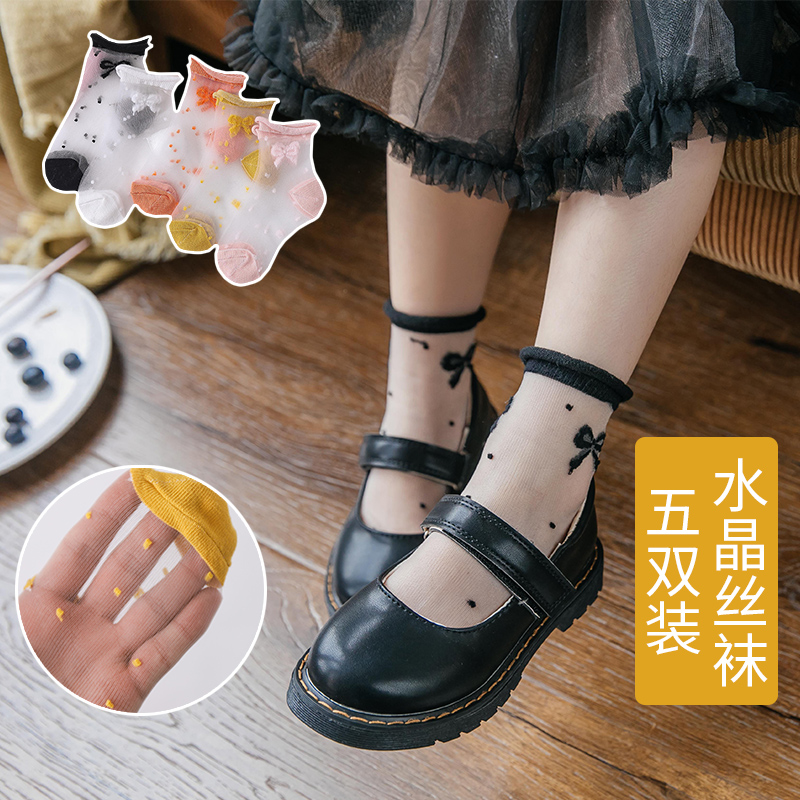 Butterfly Knot Girl Crystal Ice Silk Socks Children Socks Summer Thin flowers edge Spring Summer days Songkou Princess Sox ultra-thin