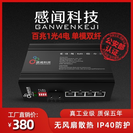 Feel the smell of industrial Ethernet switch 100M 1 optical 4 electric single-mode dual-fiber rail industrial-grade transceiver 6514F