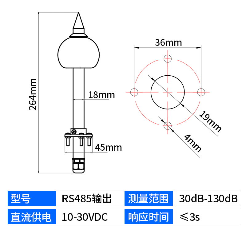 Long rod noise sensor 485 industrial high-precision decibel tester module noise detection transmitter