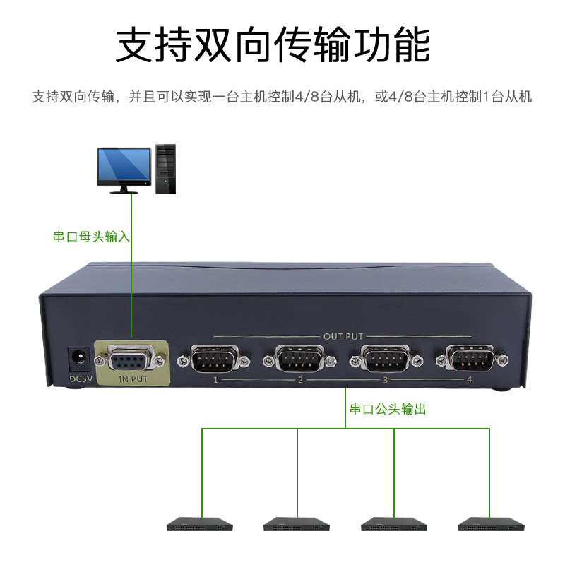 Guangzheng Wei Chuang rs232 serial distributor 1 in 4 out DB9 pin switcher converter extension cable expansion 1 point 4