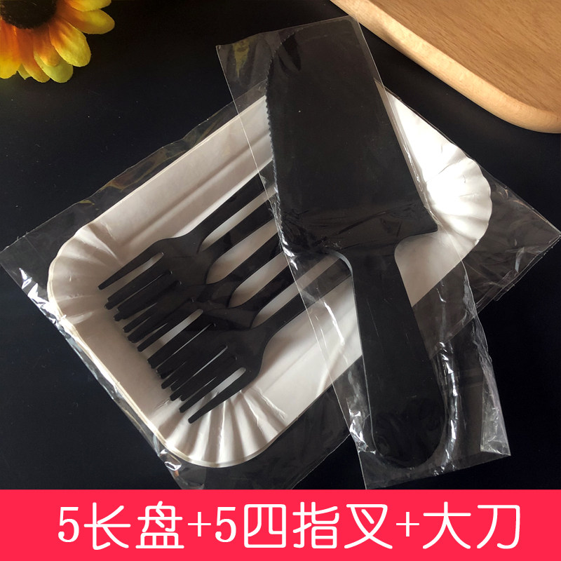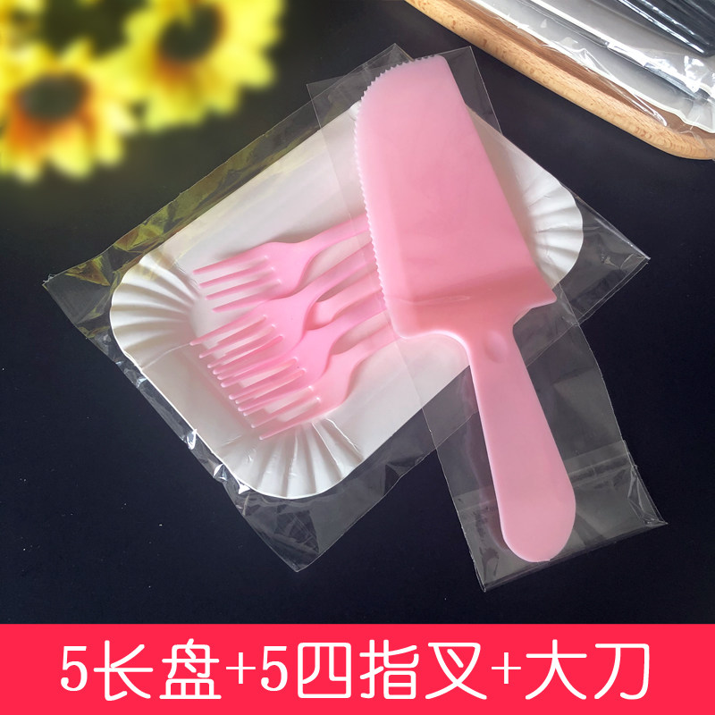 Disposable cake tableware combination 5 plates 5 forks birthday plate package four-in-one plastic knife and fork plate set