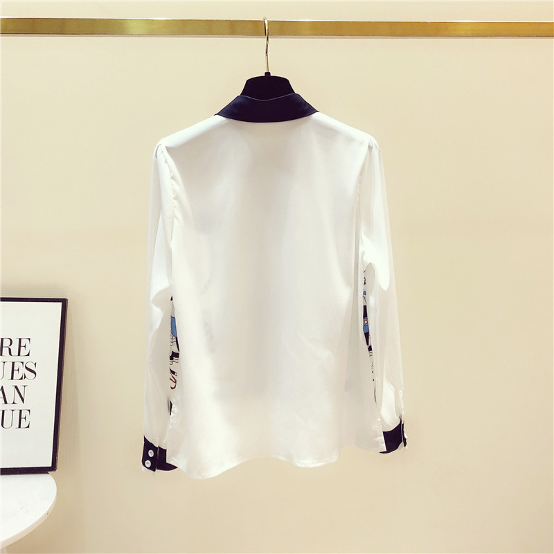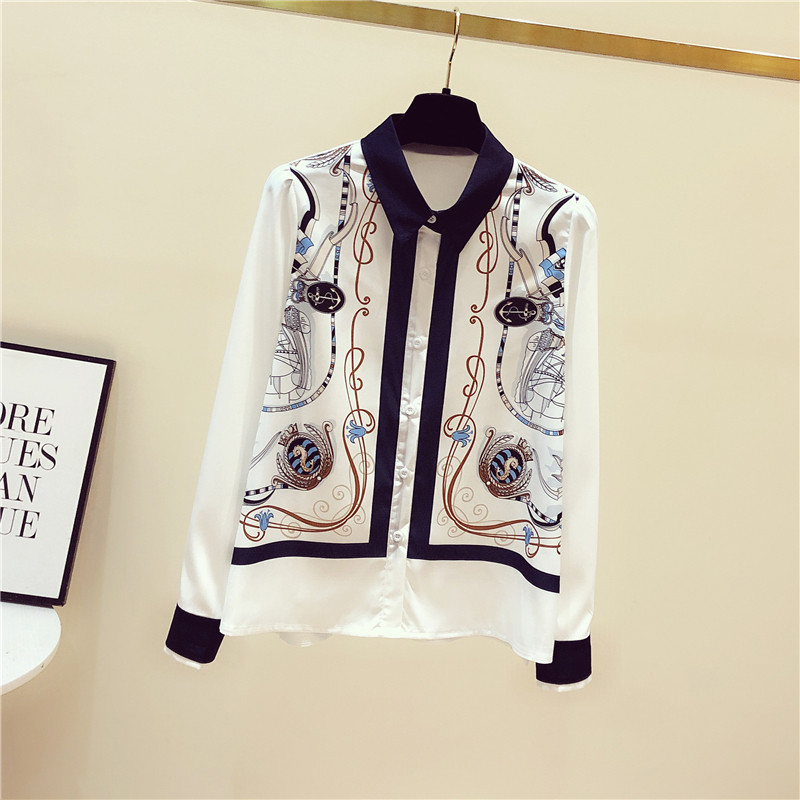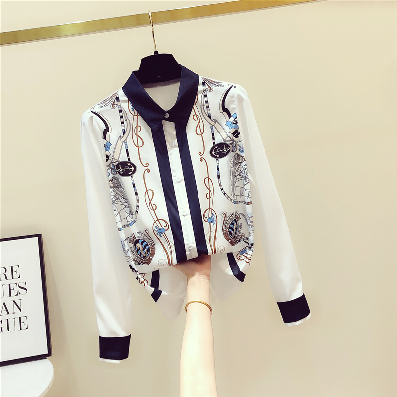 South Korea Retro Hitch Bottom Printed Shirt Woman Spring Autumn New Design Sensation Little Crowdsourced Fashion Light Cooked Shirt