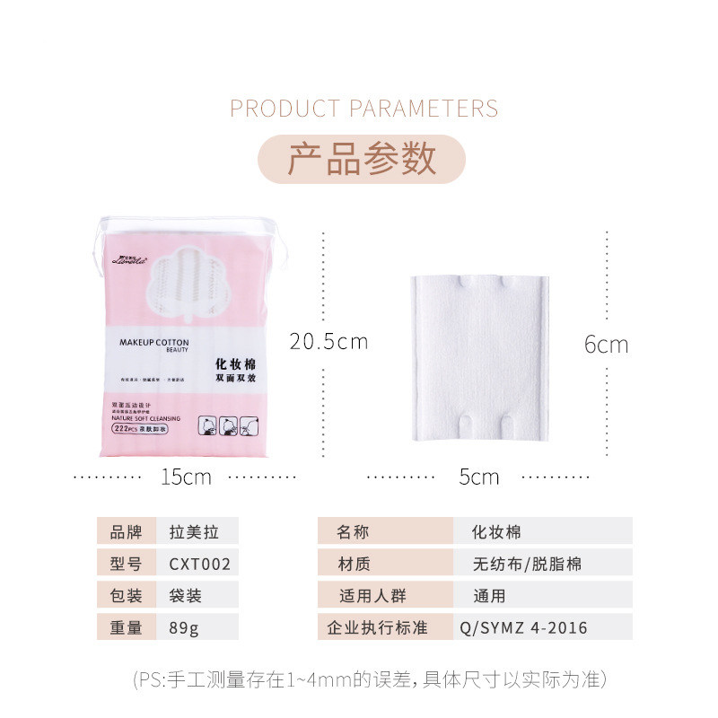 222 sheets of three-layer unwoven fabric sandwich make-up cotton stretch bagged double-sided double effect thickened efficient makeup remover cotton sheet