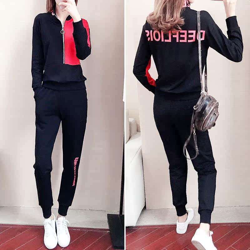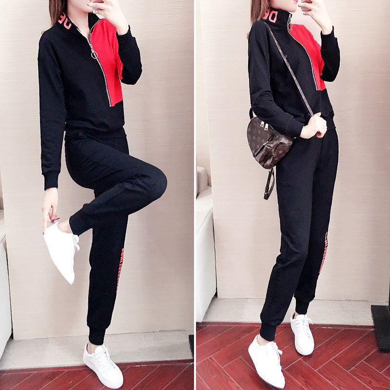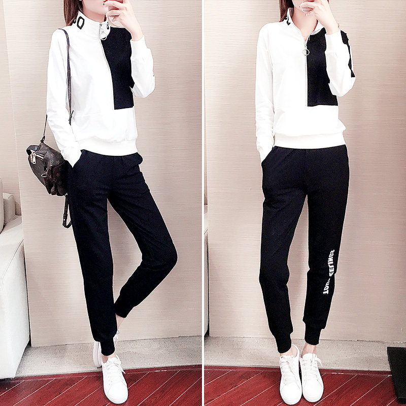 Casual sports suit women's autumn 2022 new fashion personality slim fit half zipper stand collar sweatshirt two-piece set