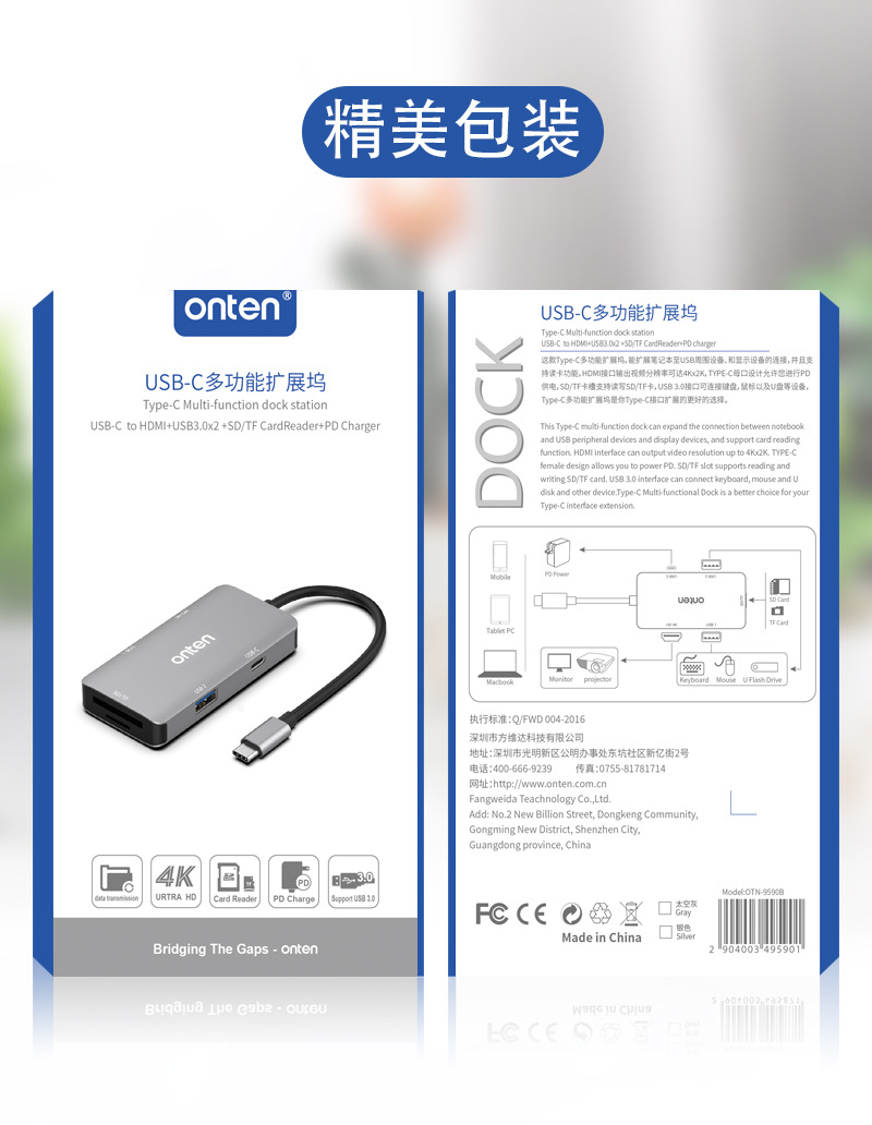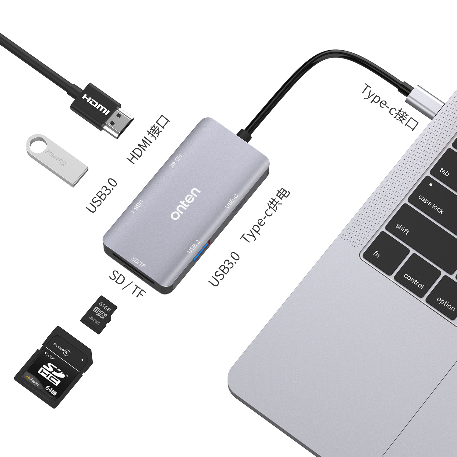 New listing type-c multi-function docking station HDMI USB*2 SD TF 4KUSB3 0 aluminum alloy