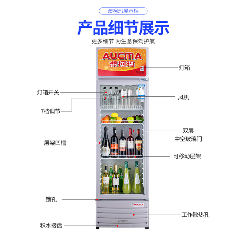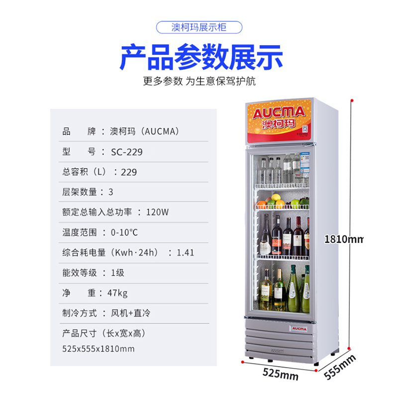 Aucma Australia Koma SC-229 vertical refrigerated display cabinet Commercial small freezer drinks display case freezer