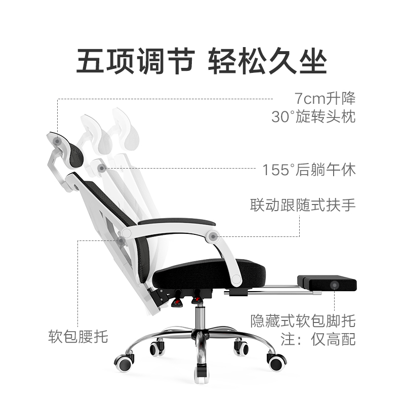 Black and white computer chair home ergonomic chair lifting and rotating comfortable sedentary simple reclining office chair