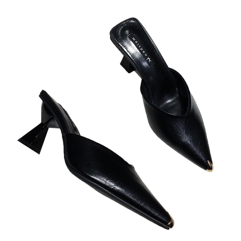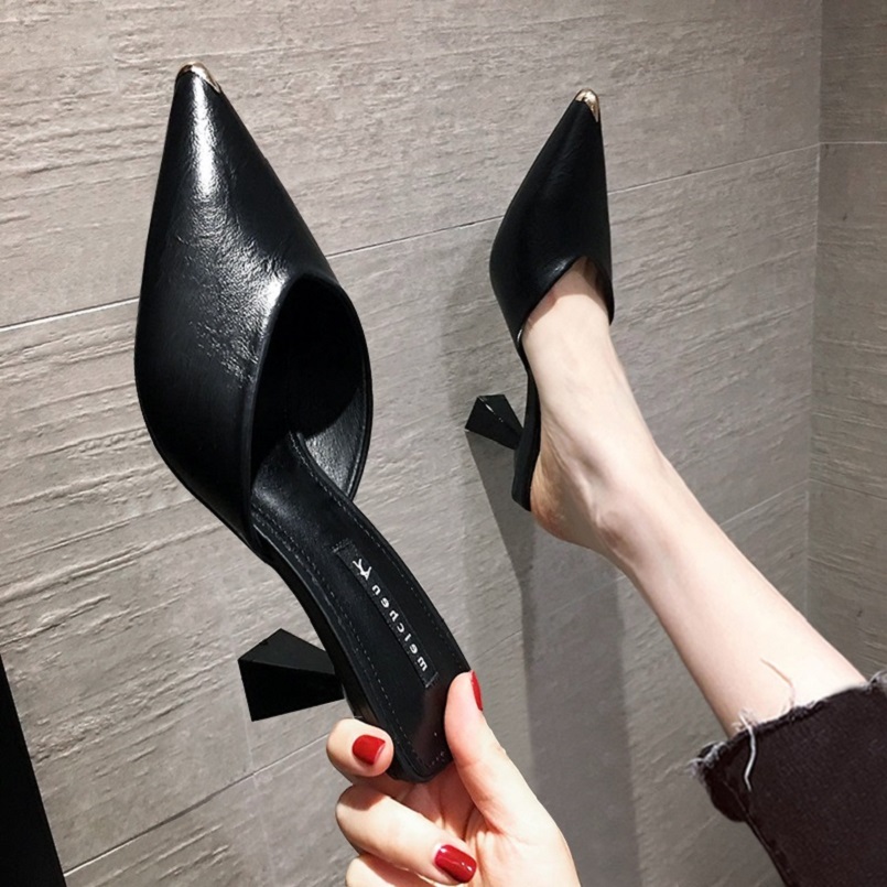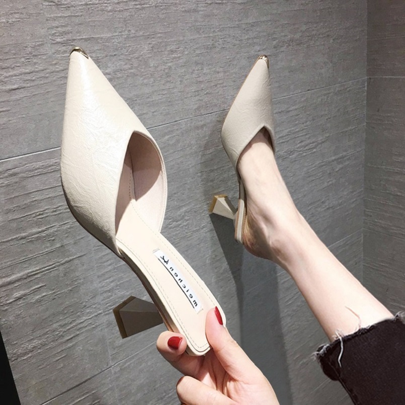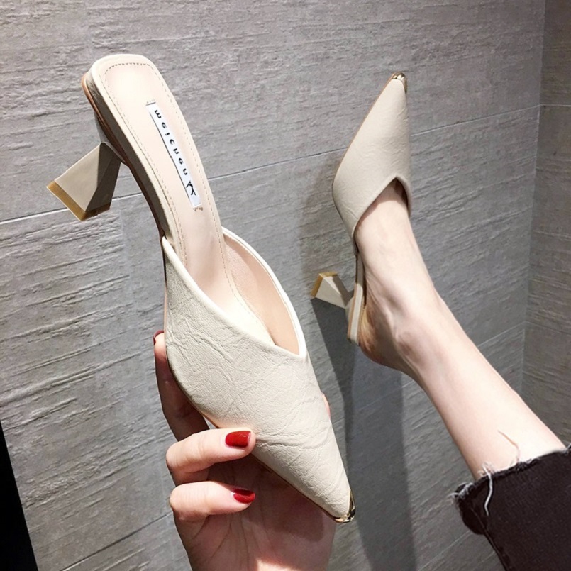 Tide Cards High Heel Sandals Woman Fine Heel 2022 Summer New Internet Red Sexy Half slipper Baotou Mueller Shoe Female outwear