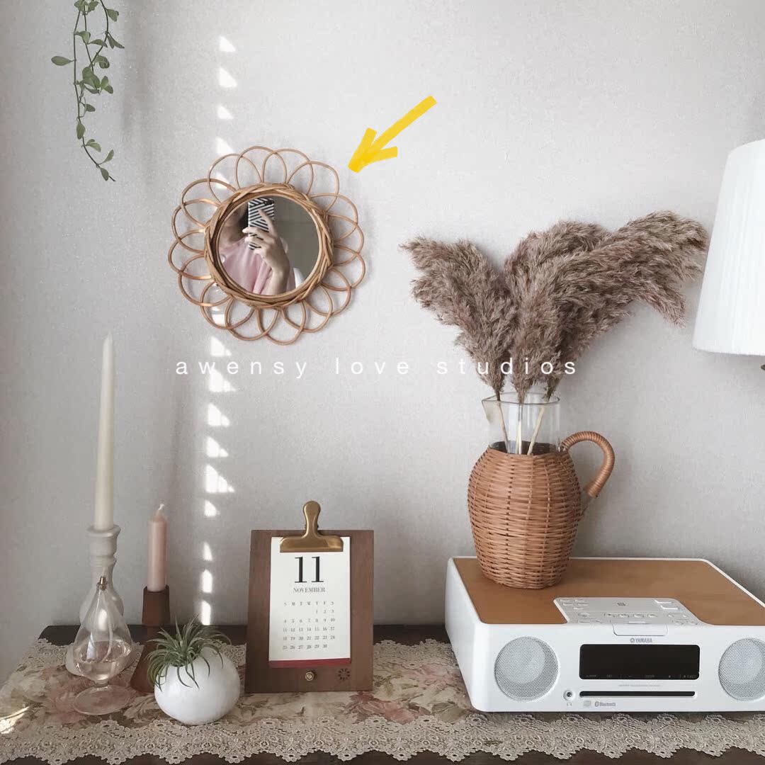 Awensy love rattan weeds ins flower mirror decoration children's room homestay entrance wall Wall Wall decoration hanging mirror