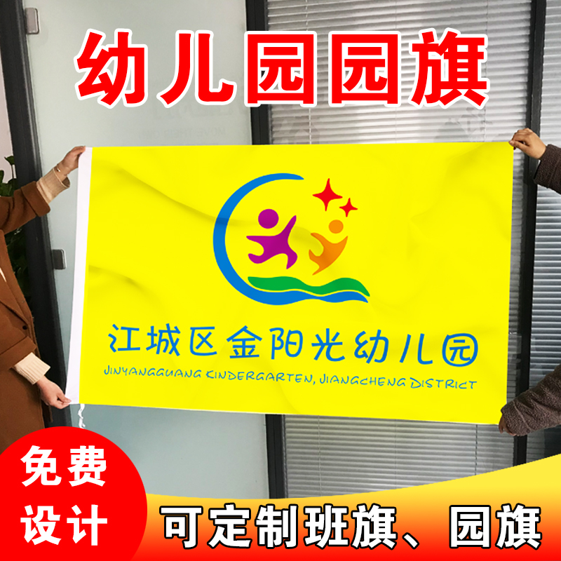 Kindergarten Spring Tour Class Flags Set Up For Class Triangle Red Flag Color Flags for Guided Tour Flag Custom Class Flag Custom Team Flag to make campus Flag color Flag Free design Cartoon Hand to lift Flag