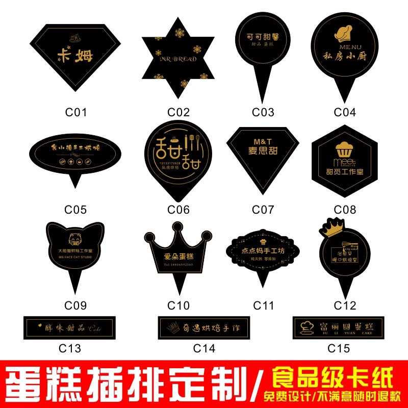 Birthday cake insert card custom logo custom-made bakery private kitchen West Point dessert label insert insert row bronzing card