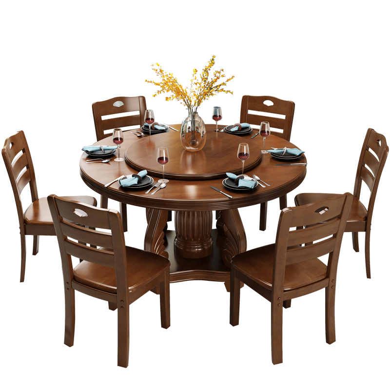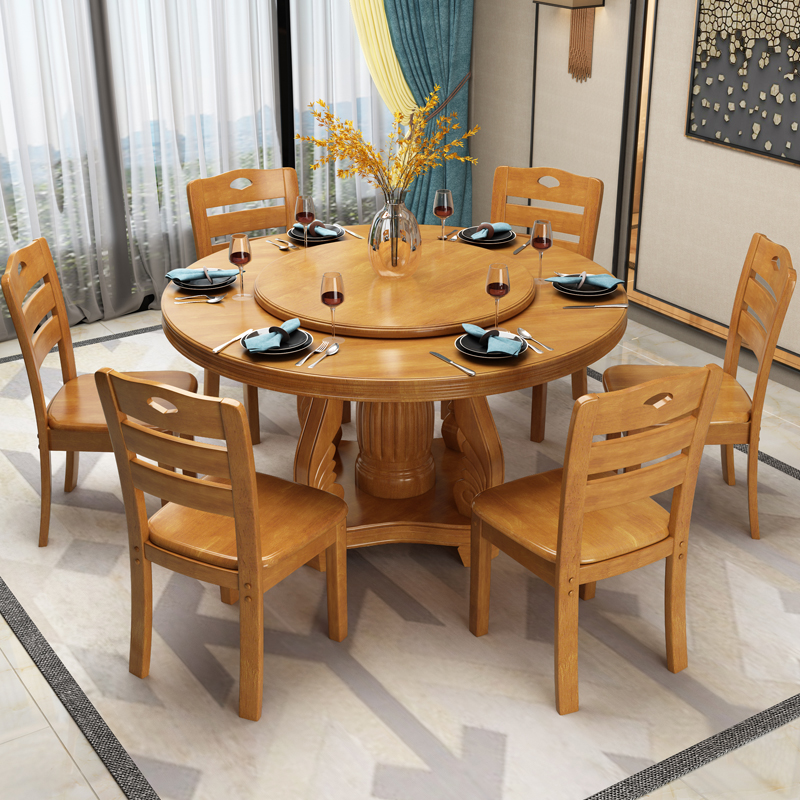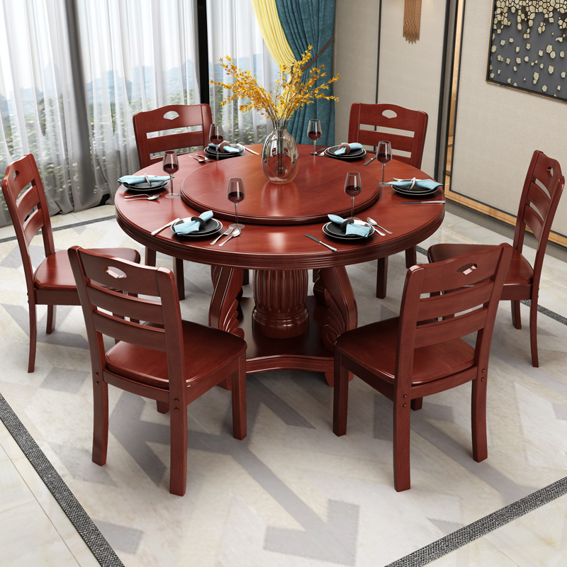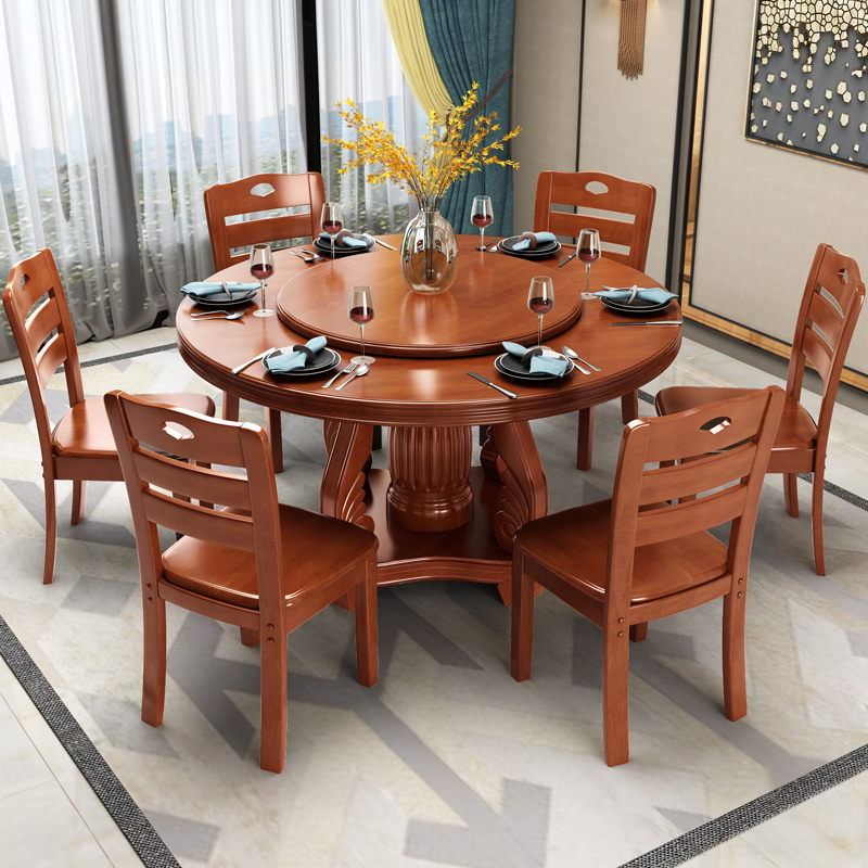 Solid wood dining table and chair combination wooden antique large round table table 8 people 10 people 12 small family Chinese style household dining table