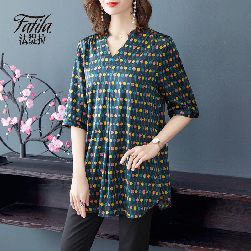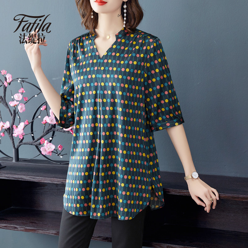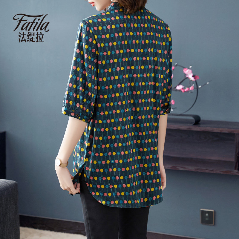 Medium - long - edition heavy silk shirt female loose wave point printing middle - aged satin sauna silk tops 2020 new product
