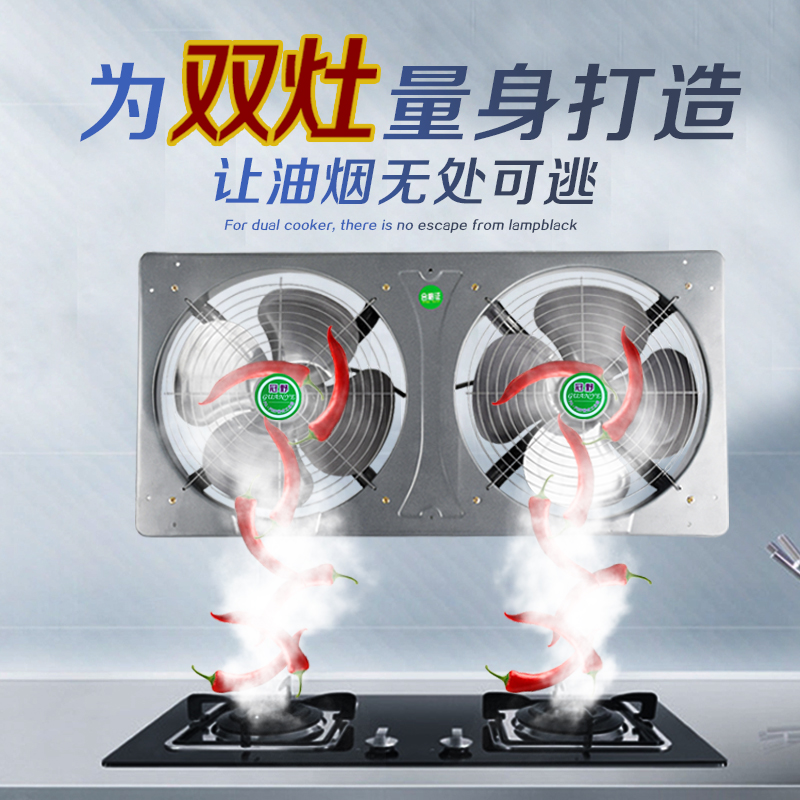 Double-row exhaust fan ventilation powerful exhaust fan Kitchen exhaust fan fume Household window type smoking one-piece