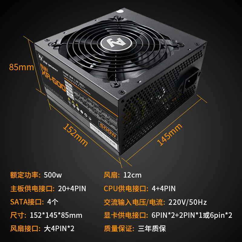 atx mute desktop computer host box switching power supply rated 500W peak 600 universal 350W400w power