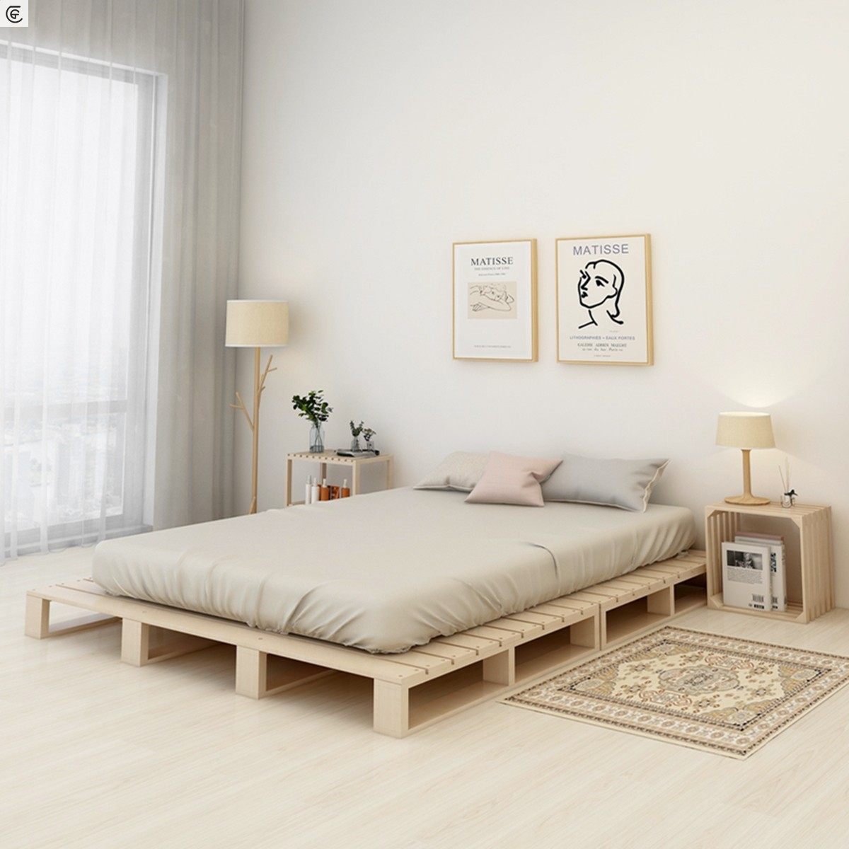 Solid wood bed in simple bed plate pine skeleton skeleton bed frame 1 8m 1 5m residential rental room in Northern Europe tatami