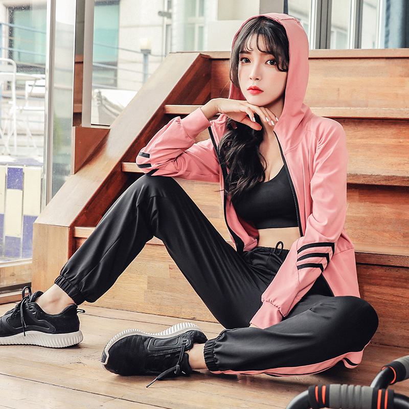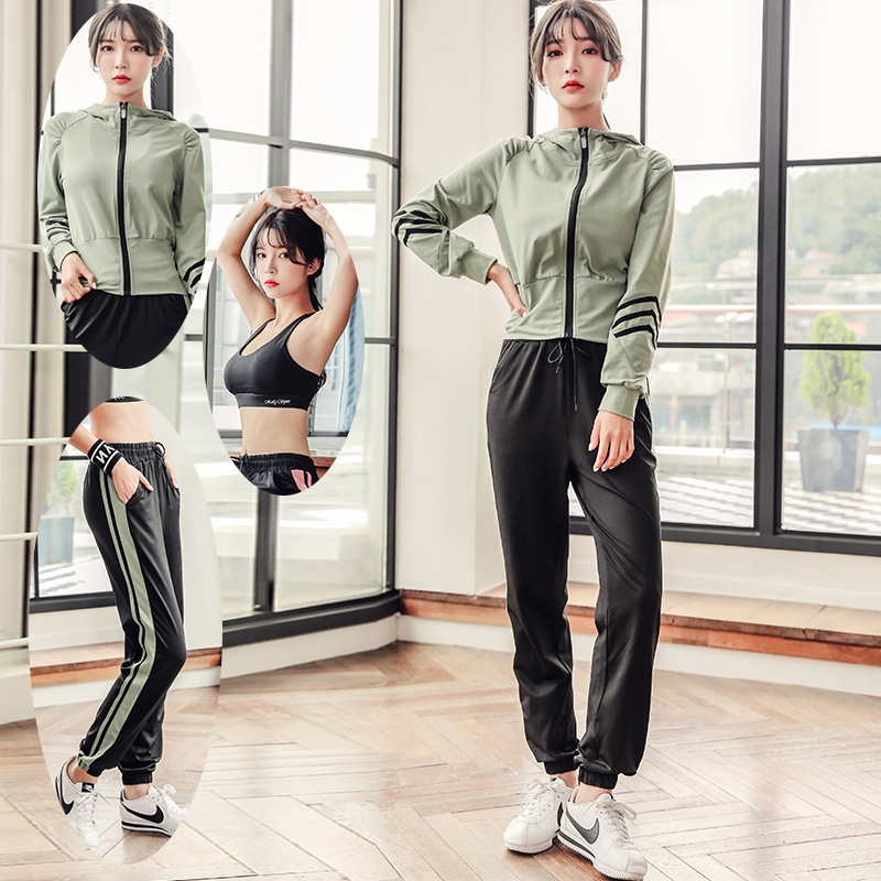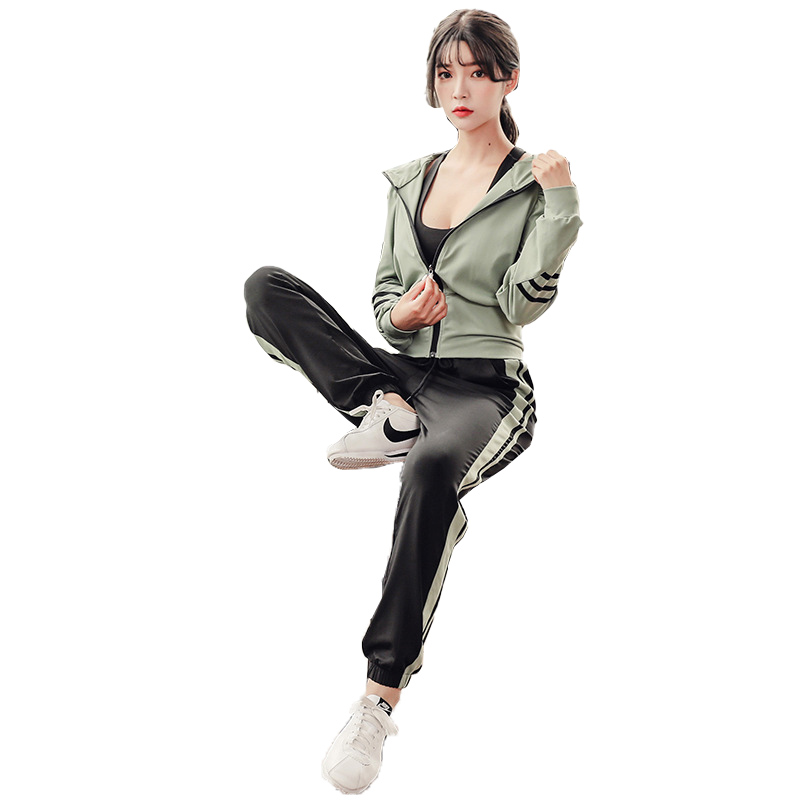 Bean green jacket Black bra Bean green trousers Leather powder jacket Black bra Leather powder trousers Purple powder jacket Black bra Purple powder trousers