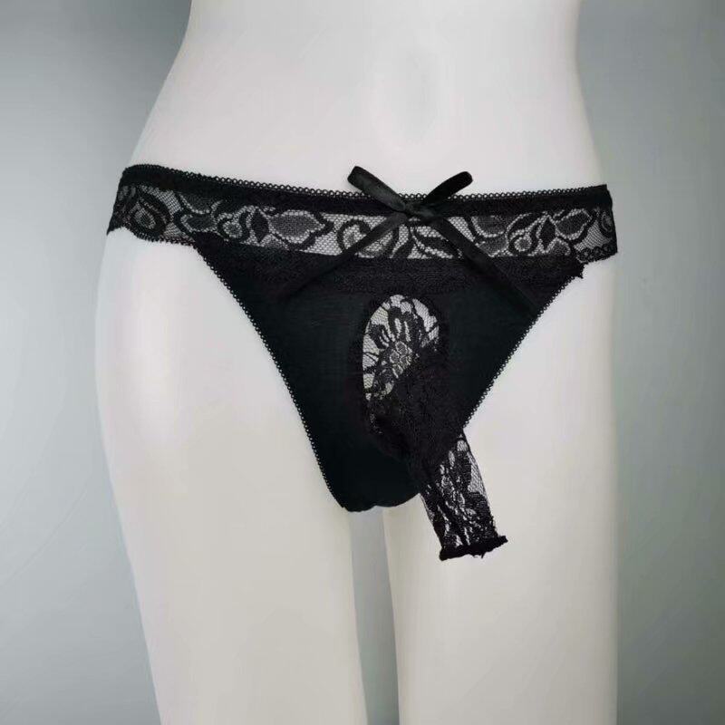 New low waist pure cotton breathable crotch pants Sexy lace U shaped sack JJ sleeve Spice Transparent Hollowed-out dpants