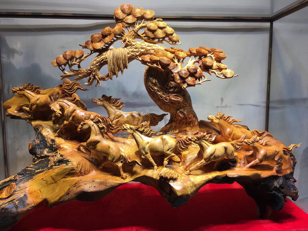 Root Carved Wood Carving Craft Gift Pendulum to Horse Octave Xiongfeng Cliff Berm Aging Old Stock Bottom Color Gold Yellow Oily Flavor